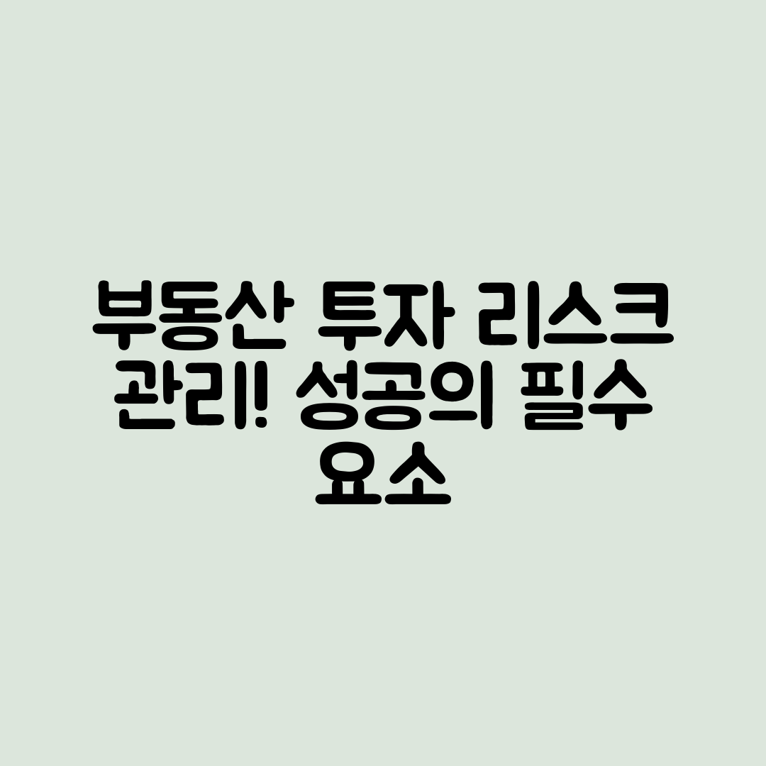 Q. 부동산 투자에서 리스크 관리를 어떻게 시작해야 할까요?