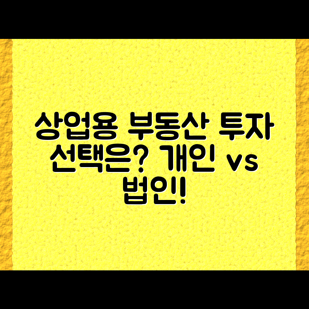 결론적으로, 상업용 자산의 “개인 vs 법인” 선택은 각자의 투자 목적과 조건에 따라 달라질 수 있습니다. 따라서 자신의 상황을 분석하고 전문가의 조언을 통해 성공적인 투자로 나아갈 수 있는 길을 찾아야 합니다.